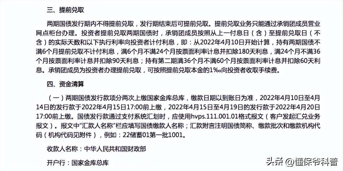根据持有时间长短,以阶梯状利率计息,不满6个月不计付利息,满6个月不满24个月就扣除180天利息,同时提前兑换国债需要支付本金1‰的手续费。