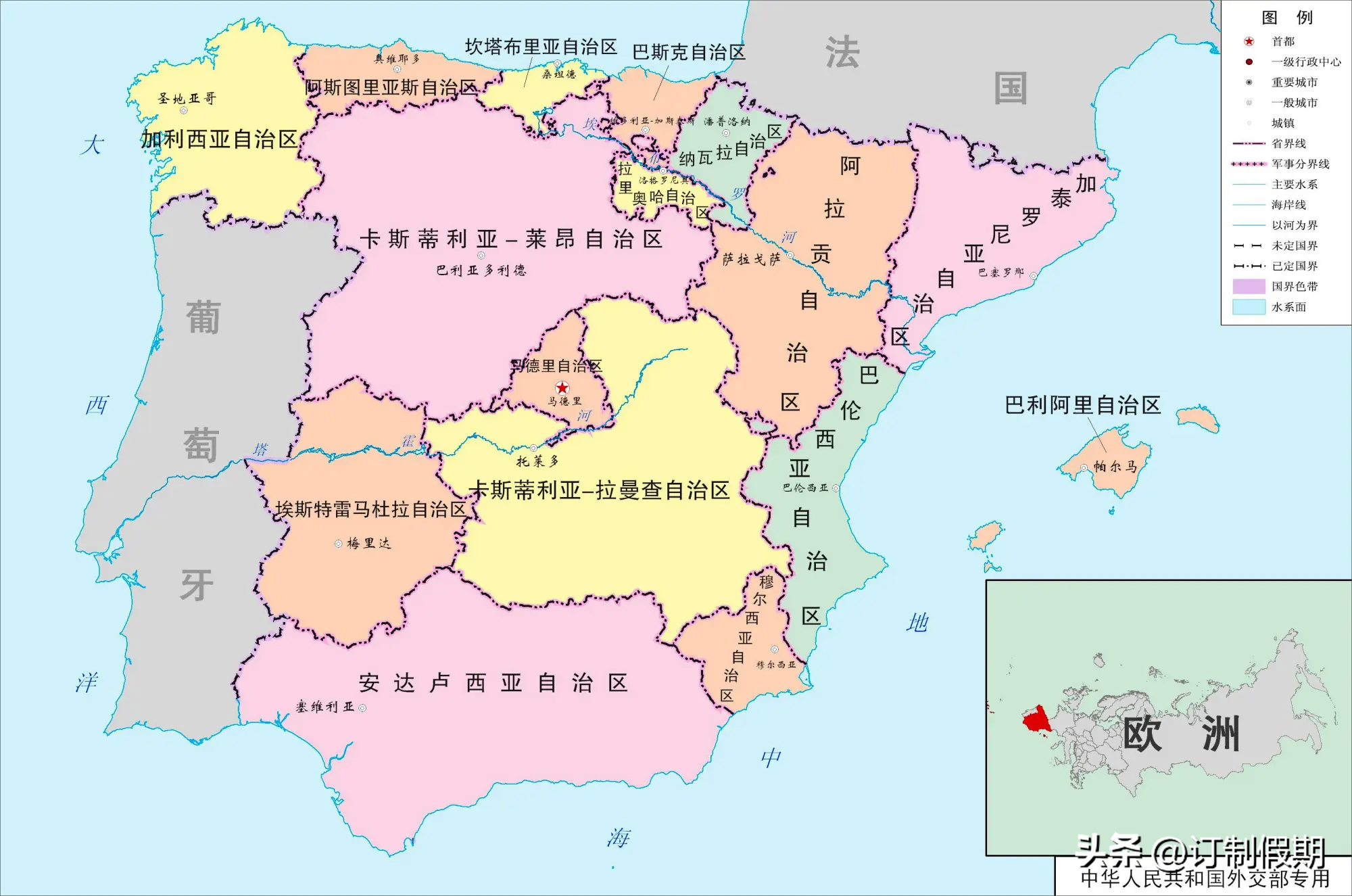西班牙王国,国家位置与政区图