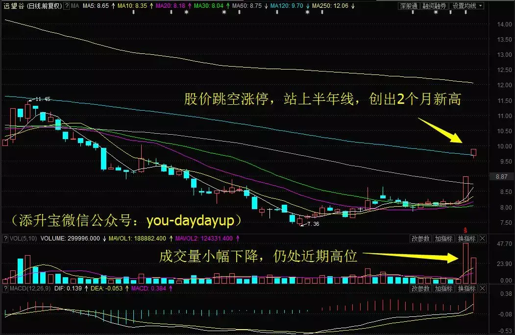 大幅跳空开盘,仅1分钟即封死涨停,收涨10.02%,站上半年线,再创2个月新高,成交量小幅下降。