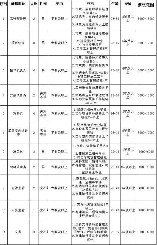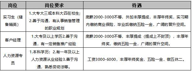 招聘岗位有:市场专员,客服专员,经理助理,人事专员,行政专员,出纳,网络编辑,管理培训生,市场部经理