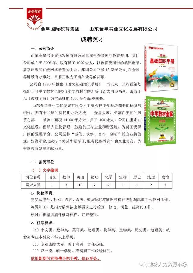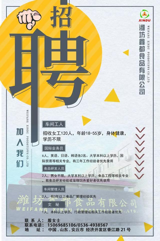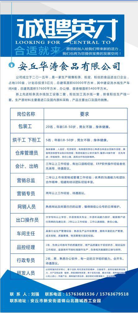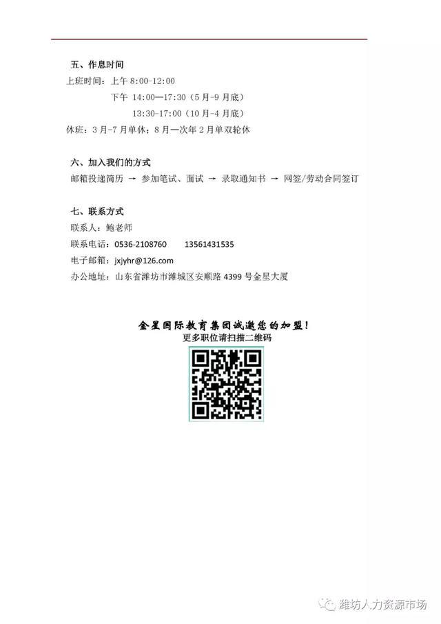 联系人:人事行政部 焦先生 电话:15854427244 张女士 电话:0536-7867918