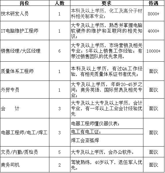 研发10;年龄:20-30;本科以上学历;高分子、化工、材料、橡胶等相关专业