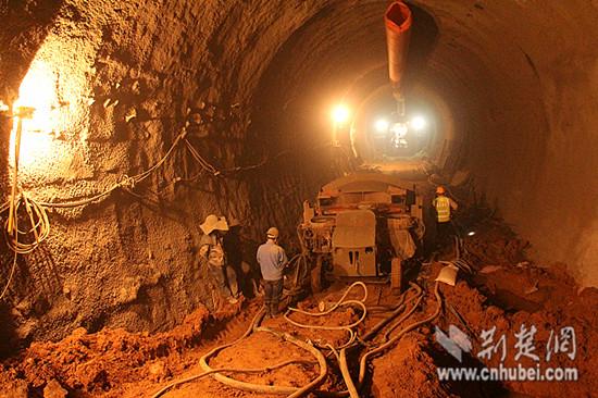 工人在鄂北工程1标段隧洞内紧张施工 记者周三春 摄