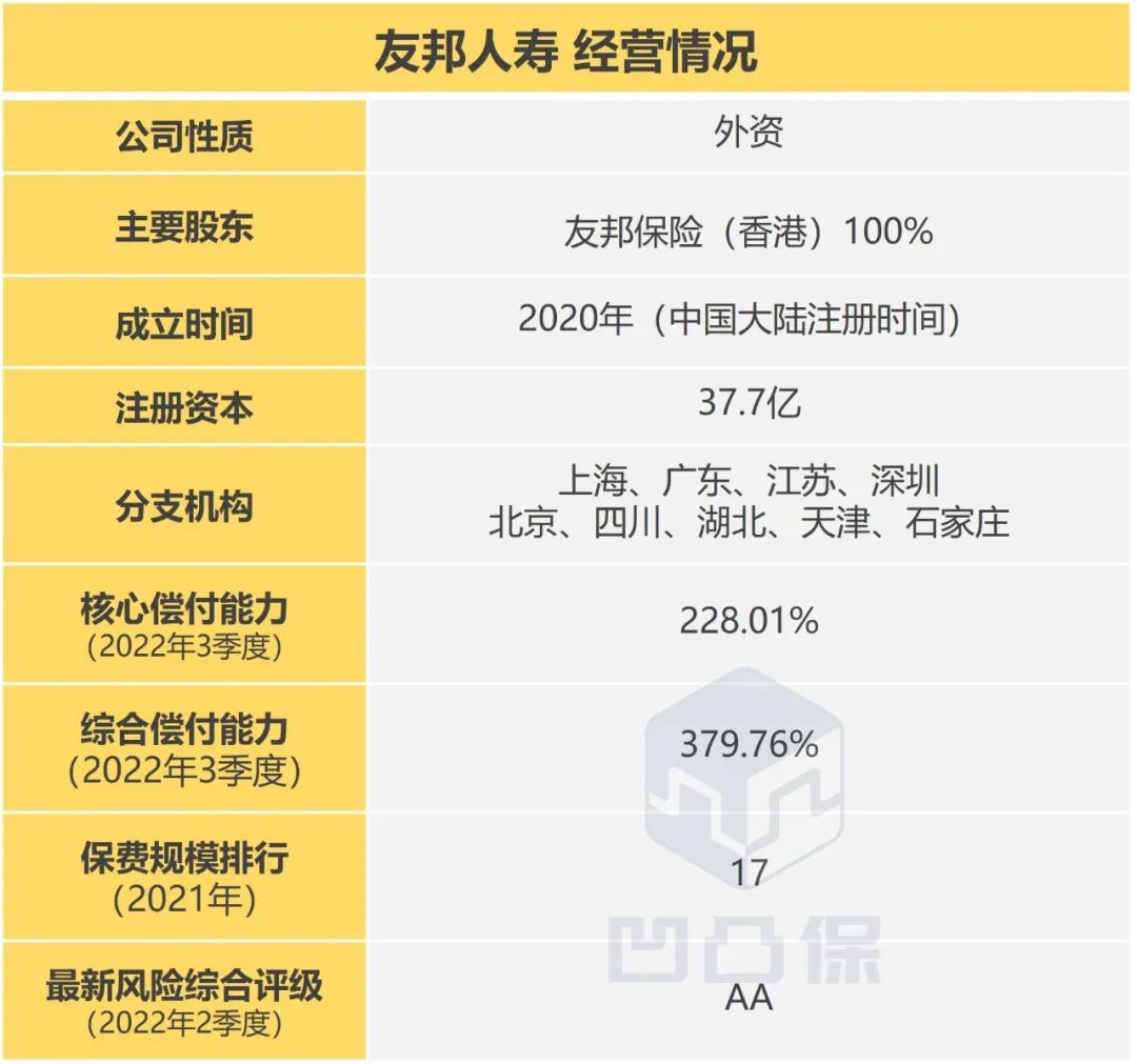 2020年7月份前,在中国内陆一直以香港友邦的分公司的身份展业,2020年10月份正式完成把友邦保险上海分公司转为独资子公司—友邦人寿。