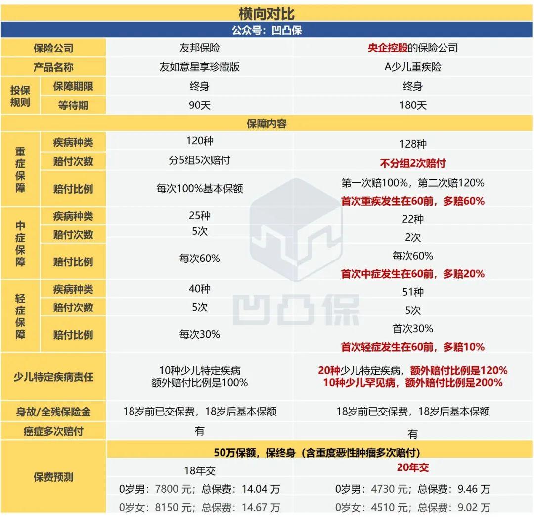 并且在少儿特定重疾关爱金的条款细节上,友如意星享珍藏版仅限首次重疾有效,而A少儿重疾险没有这样的限制。