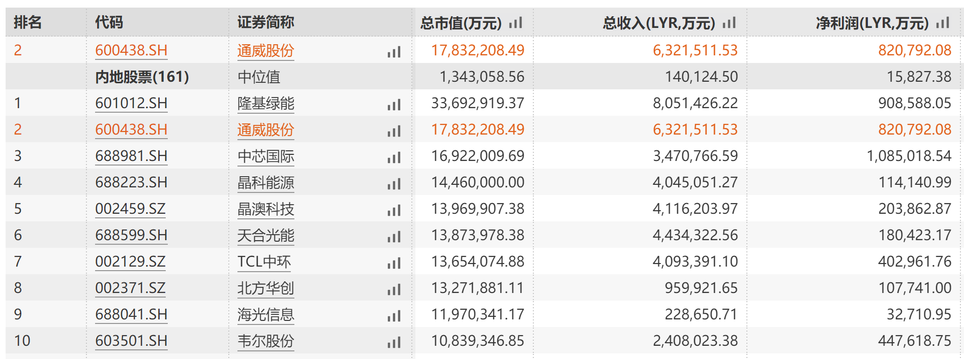 通威股份在光伏产业实现了上中下游的全产业布局。