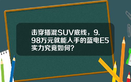 汽车百科 插混SUV黑马!限时抢购价9.98万元的蓝电E5能甩长安CS75 PLUS几条街 作为插混车型,蓝电E5比长安CS75 PLUS 多出三电系统,能够带来100km... 星蕴 2023-12-09 114