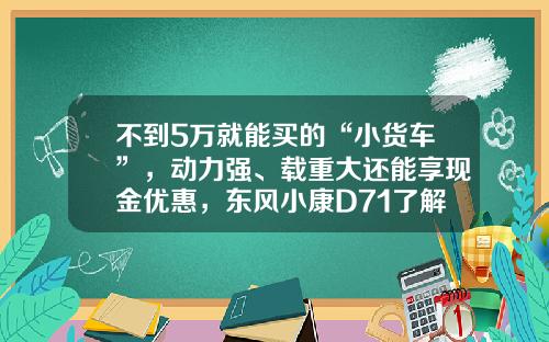 汽车百科 不足5万就能买“小货车”,动力强、载重大还有现金优惠,东风小康D71了解下吧 今天,我们为大家挑选出一款性价比不错的超级物流小卡,东风小康D71,官方指导价4... 星蕴 2023-10-26 284